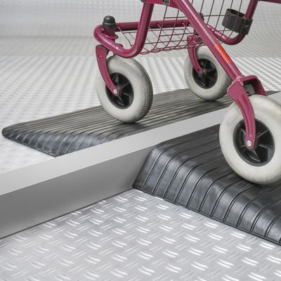 Een drempelhulp is een plaat waarmee je eenvoudig hoogteverschillen overbrugt, zoals een deuropening, schuifpui, stoeprand of overgang tussen twee ruimtes. Je legt de plaat los neer, zonder montage, en maakt zo in een handomdraai een toegankelijke doorgang. Drempelhulpen zijn onmisbaar in woningen, winkels, zorginstellingen en werkplaatsen.