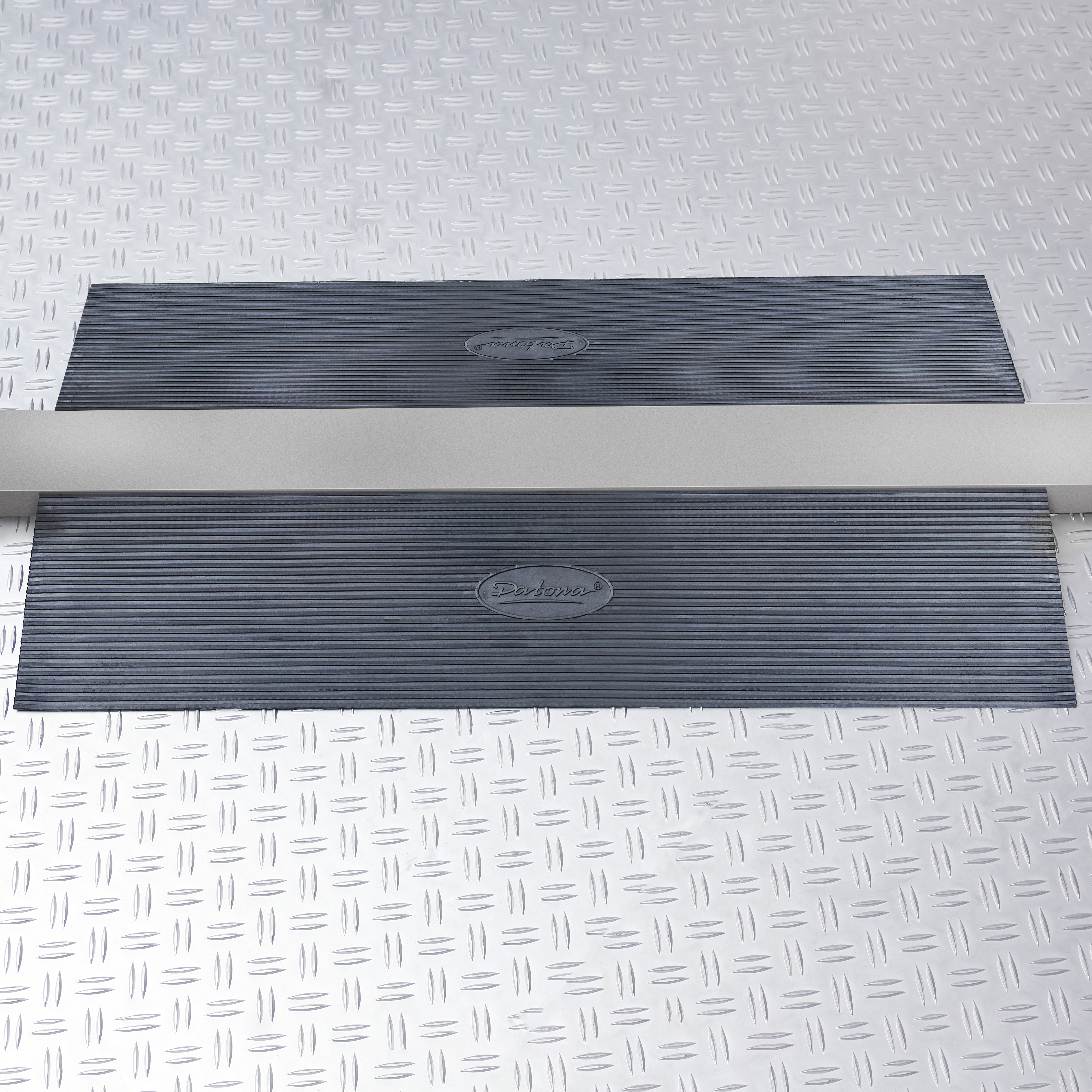 Rubber is een dempend materiaal, hierdoor hoort u geen klapperende wielen, maar is het juist stil als u over de plaat heen rijdt. Daarnaast is elke drempelhulp voorzien van een antislipprofiel en is waterdicht, hierdoor kunt u altijd veilig over de drempel heen, ook als het nat is.